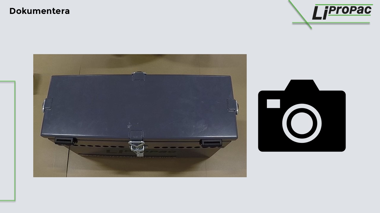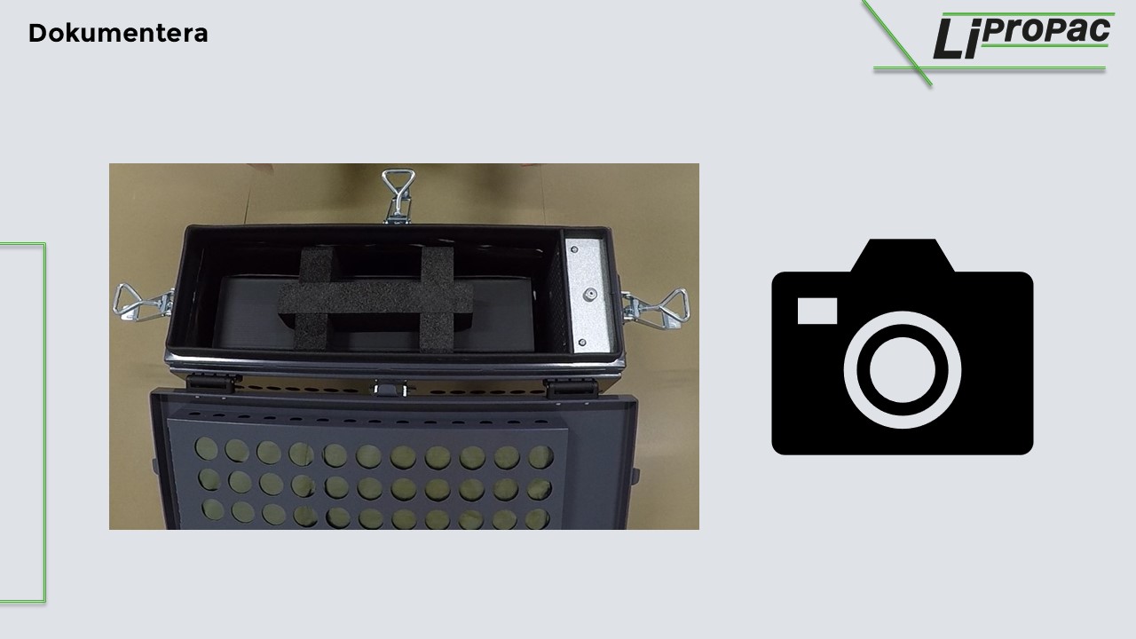 Efter packning och dokumentation mailar ni bilderna till landvetter@dgm.se för godkännande.